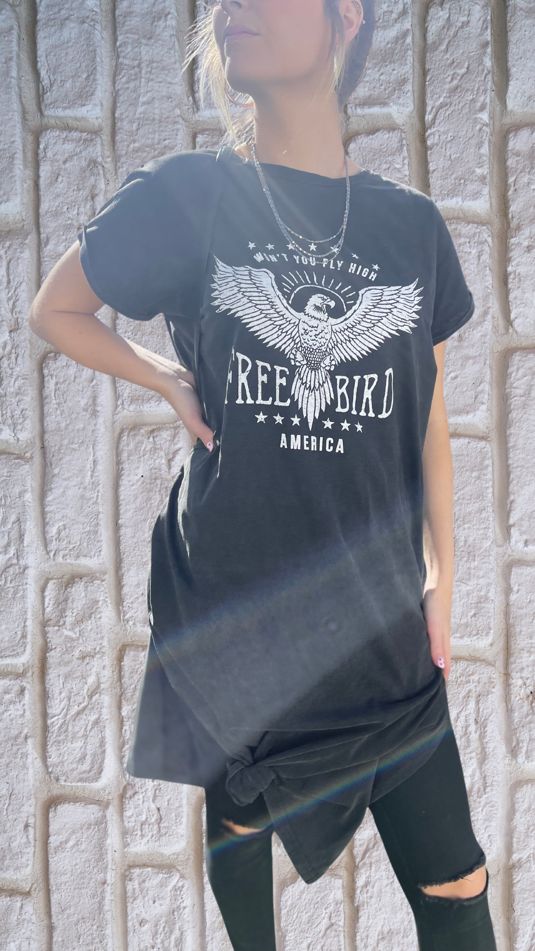 You'll look fly in this Flying Free Maxi Dress. Has 2 side slits for a flattering and slightly sexy look and can be dressed up for a night out or with a pair of sneakers for a day of running around! Fits true to size with natural oversize fit.