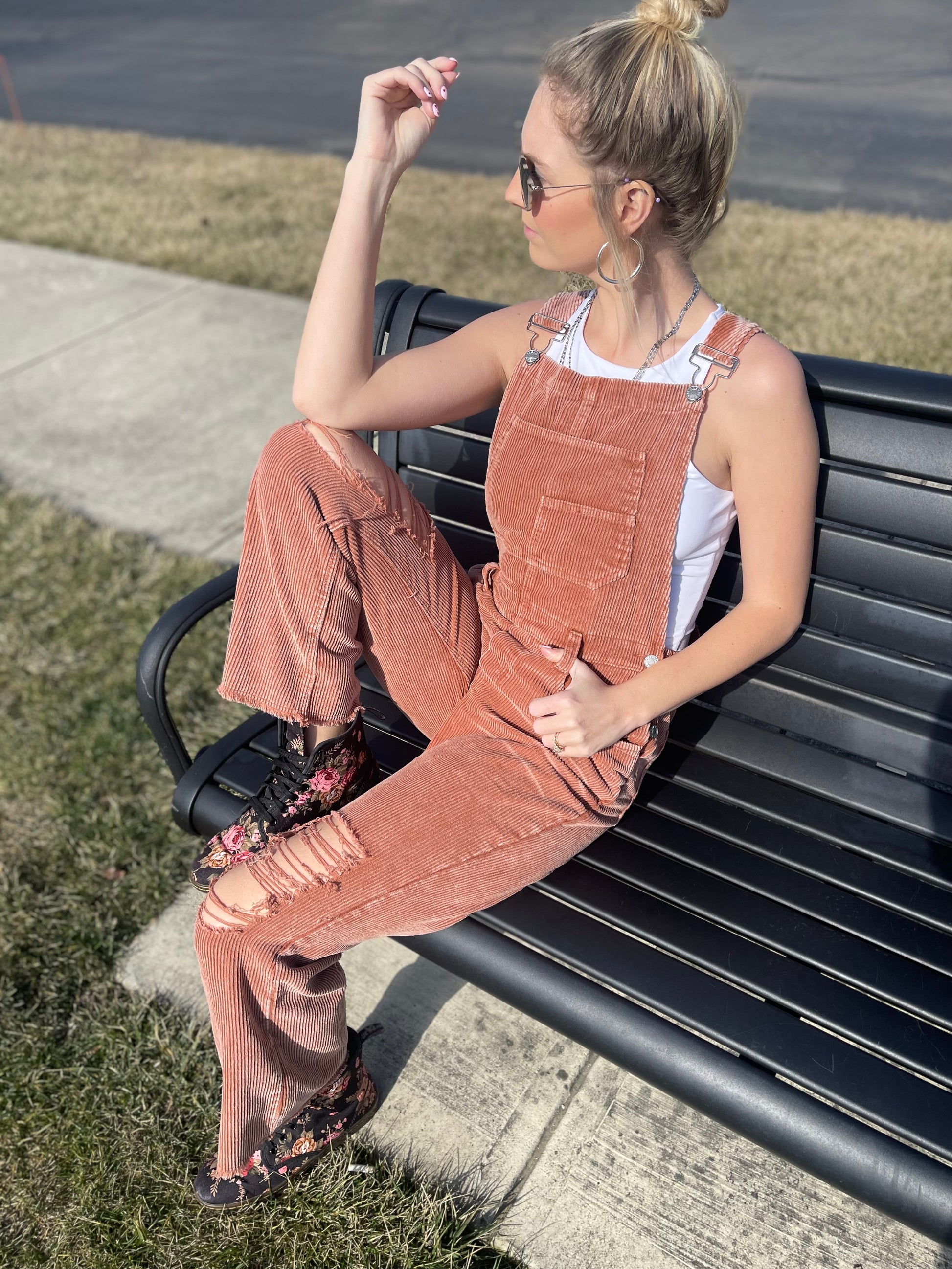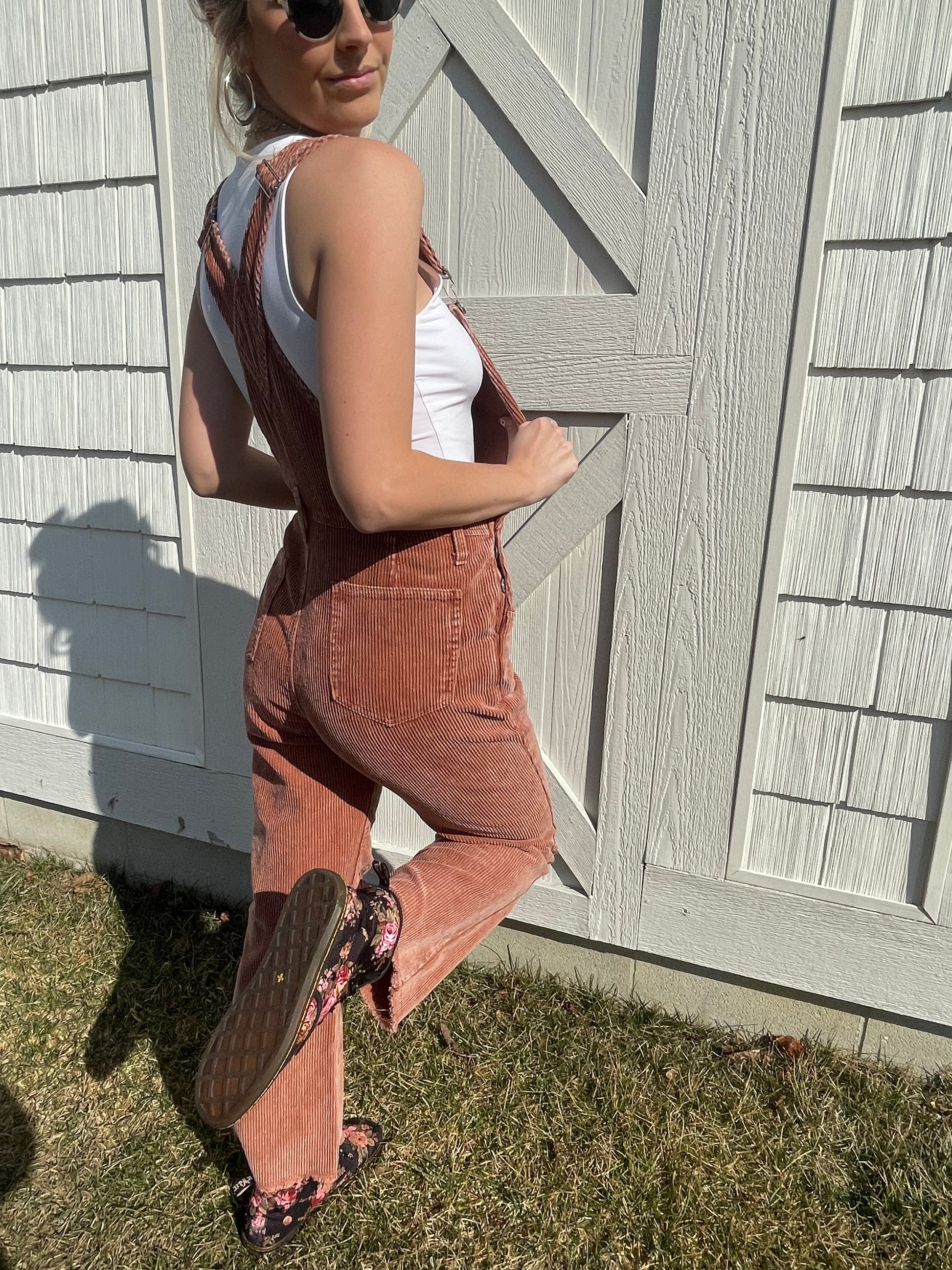 A vintage lovers dream! The corduroy texture is soft and smooth, with adjustable straps and belt loops this piece will become your ultimate favorite in no time. Featuring a wide leg and distressing. This piece fits true to size.